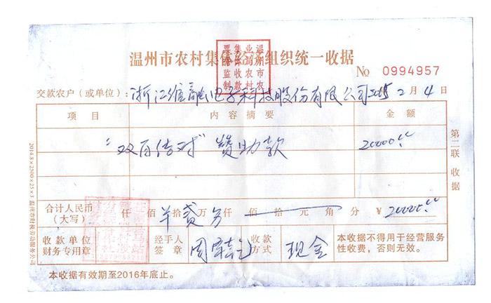 2015.1馬站下魁村雙百結(jié)對贊助款2016年臺風(fēng)捐贈5000元幫助貧困老人捐款受災(zāi)員工