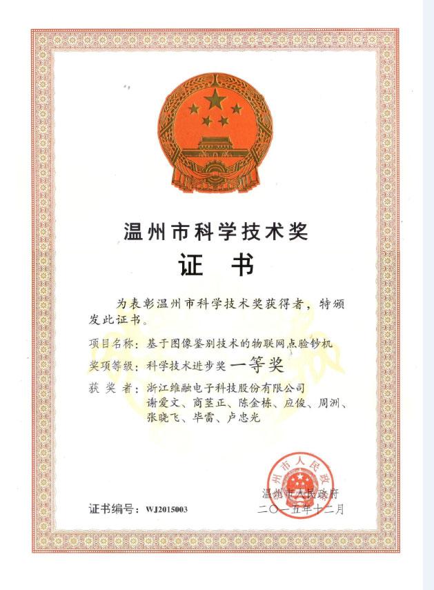 溫州市科學(xué)技術(shù)進步獎一等獎