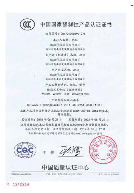 便攜式發(fā)卡機(jī)CCC證書(shū)