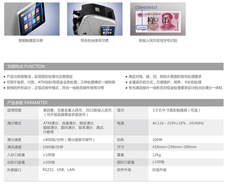 高速全功能清分能力,精準的冠字號碼識別技術與網絡信息管理,全方位檢測紙幣真?zhèn)?br>類型: 插電式