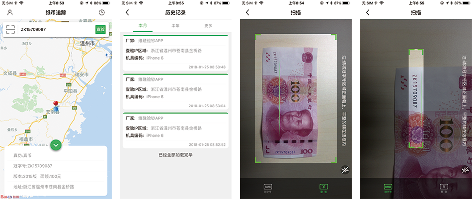 用戶可通過該應(yīng)用進(jìn)行多種方式的錢幣查詢,可通過紙幣冠字號(hào)查詢或者紙幣掃描查詢來查看紙幣流向以及判定紙幣的真?zhèn)巍?/p>