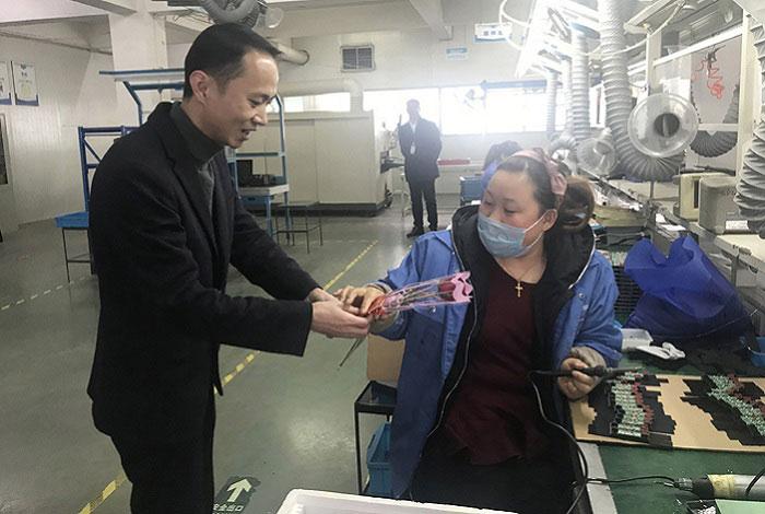 3月8日,維融股份組織開(kāi)展“三八”婦女節(jié)女職工慰問(wèn)活動(dòng)。公司黨支部、工會(huì)、女職委一行人,走近車間,為工作在各崗位的女職工送上鮮花和紅包,獻(xiàn)上節(jié)日祝福。據(jù)了解,“三八”婦女節(jié)給女職工發(fā)福利的傳統(tǒng)在維融中已持續(xù)了10多年。