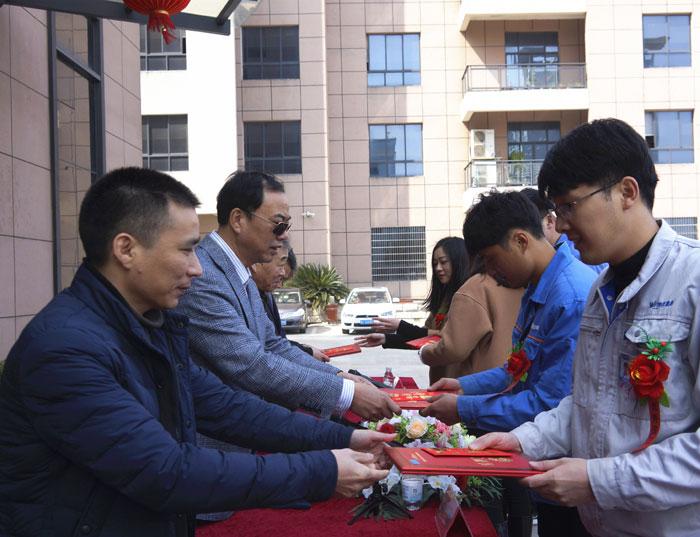 接著,主持人宣讀《維融股份公司關(guān)于2017年評優(yōu)結(jié)果的通報》。會議表彰了23名優(yōu)秀員工。公司高層管理人員為獲獎員工頒發(fā)了榮譽證書和獎金。接著,兩位員工錢靜、蘇孝永作為優(yōu)秀員工代表上臺發(fā)言。獲獎代表們對所獲的榮譽表達感激,也表示今后會珍惜榮譽、戒驕戒躁,在新一年里為公司轉(zhuǎn)型升級貢獻力量。