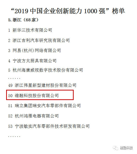 重磅!維融科技躋身“2019中國(guó)企業(yè)創(chuàng)新能力1000強(qiáng)”