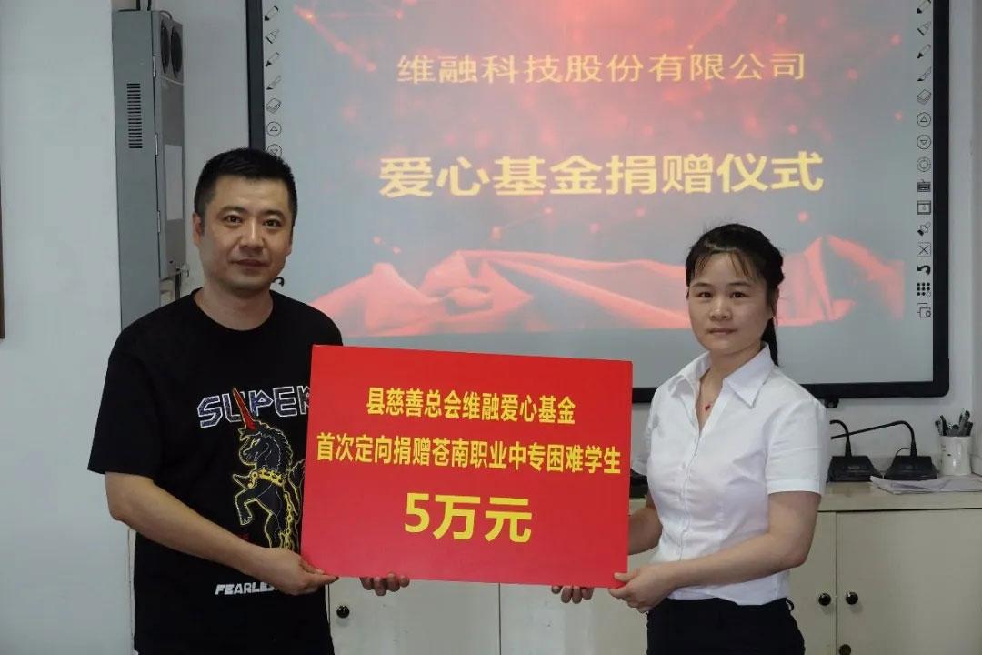 5月中旬,維融科技與蒼南縣職業(yè)中等專業(yè)學(xué)校簽訂《校企合作協(xié)議書》,雙方達(dá)成以產(chǎn)教融合模式,實(shí)現(xiàn)人才培養(yǎng)適應(yīng)維融科技發(fā)展需求。6月,經(jīng)蒼南縣維融愛(ài)心基金理事會(huì)商議、請(qǐng)示,縣慈善總會(huì)同意,將縣職業(yè)中等專業(yè)學(xué)校全體學(xué)生納入“蒼南縣維融愛(ài)心基金”幫扶范圍內(nèi)。
