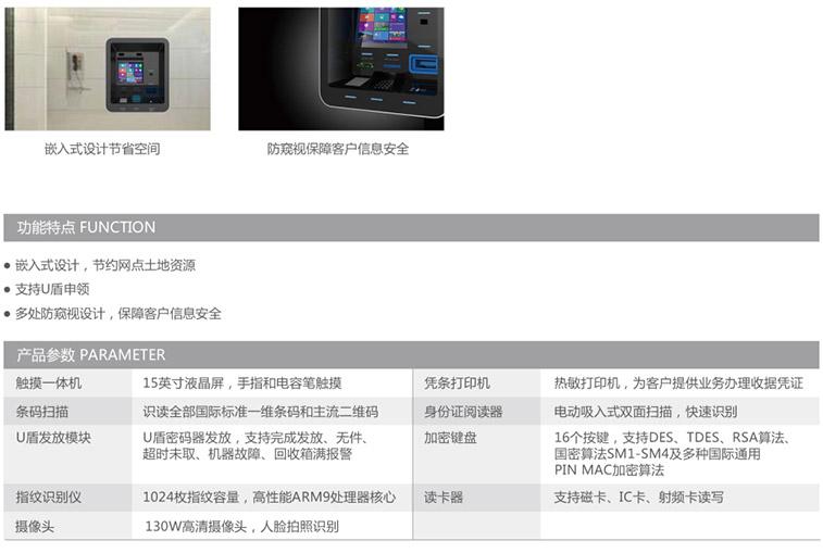 嵌入式設計,節(jié)約網點土地資源、支持U盾申領 、 多處防窺視設計,保障客戶信息安全